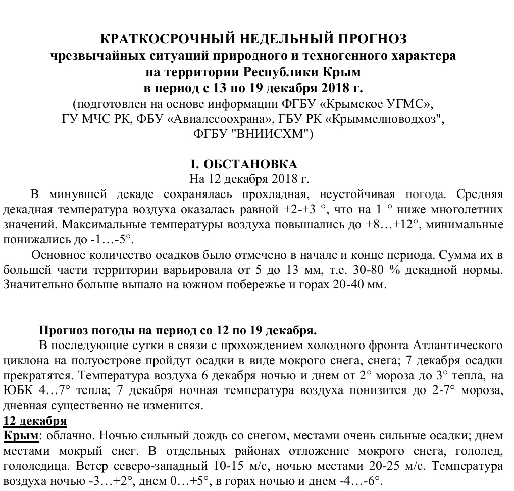 Главная / Информация / Краткосрочный недельный прогноз по 19 декабря 2018 г.