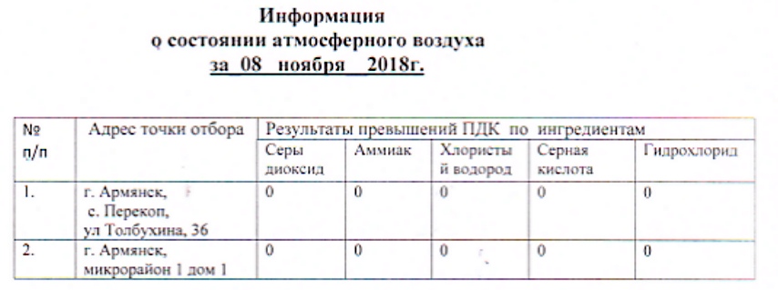 Главная / Информация / О состоянии атмосферного воздуха на 08.11.2018 года