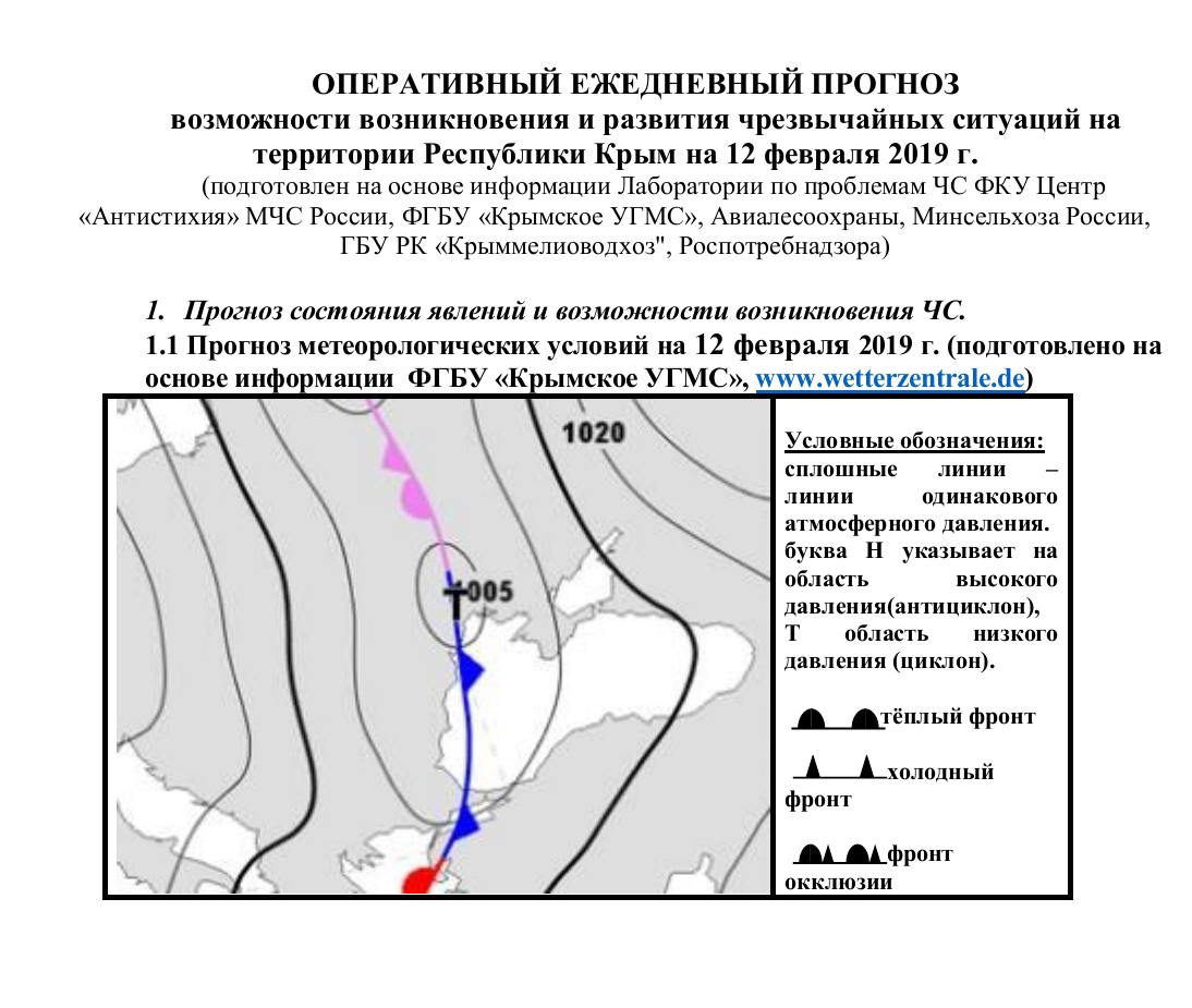 Главная / Информация / Оперативный ежедневный прогноз на 12.02.2019