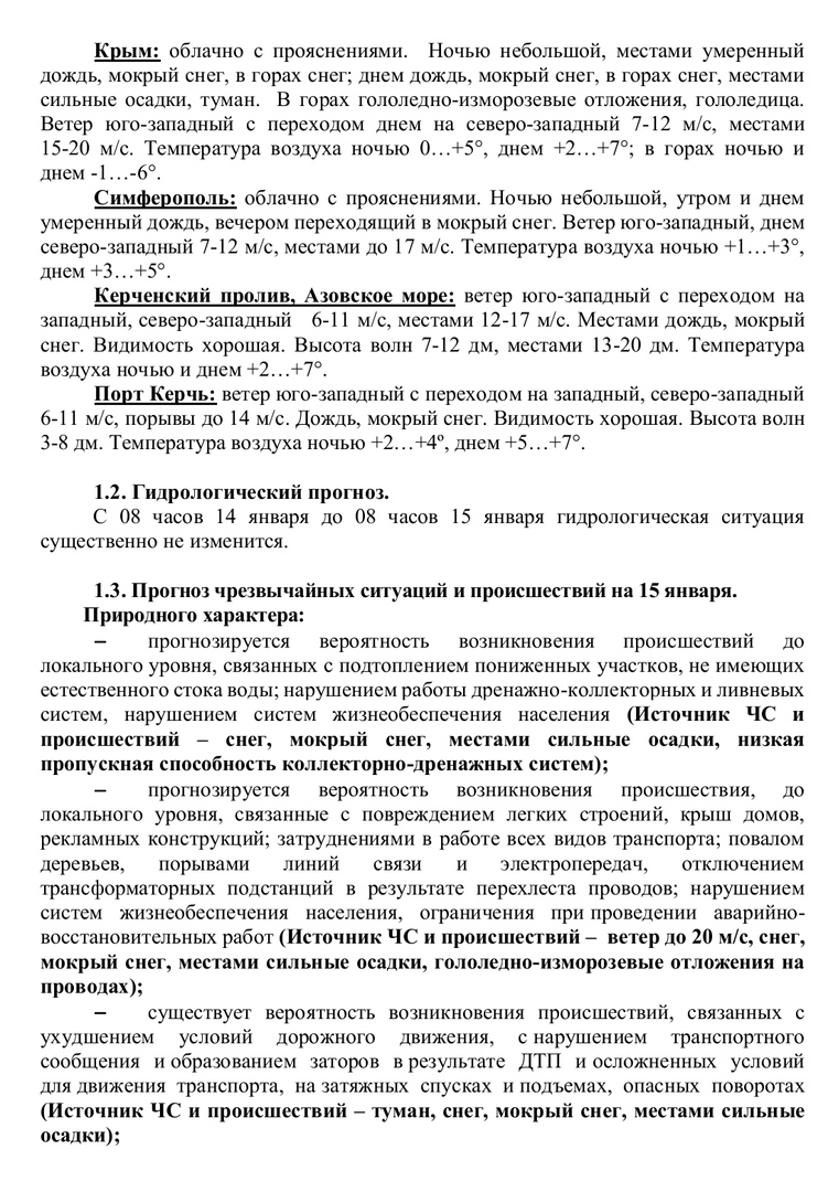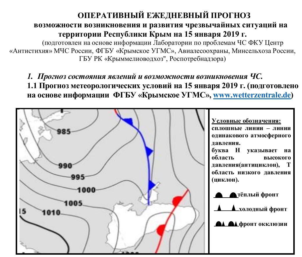 Главная / Информация / Оперативный ежедневный прогноз на 15.01.2019