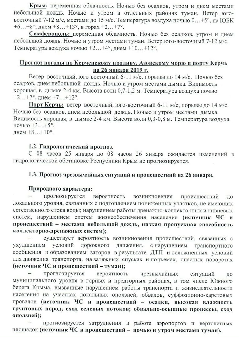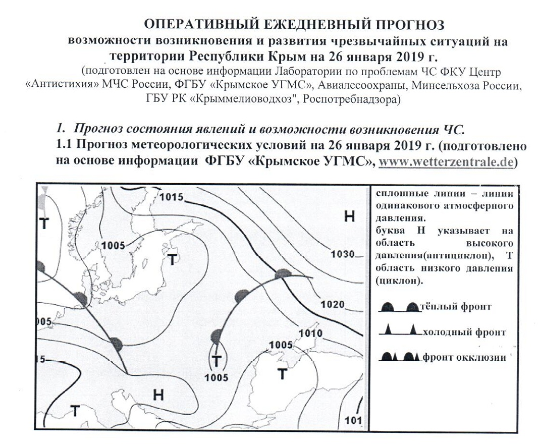 Главная / Информация / Оперативный ежедневный прогноз на 26.01.2019
