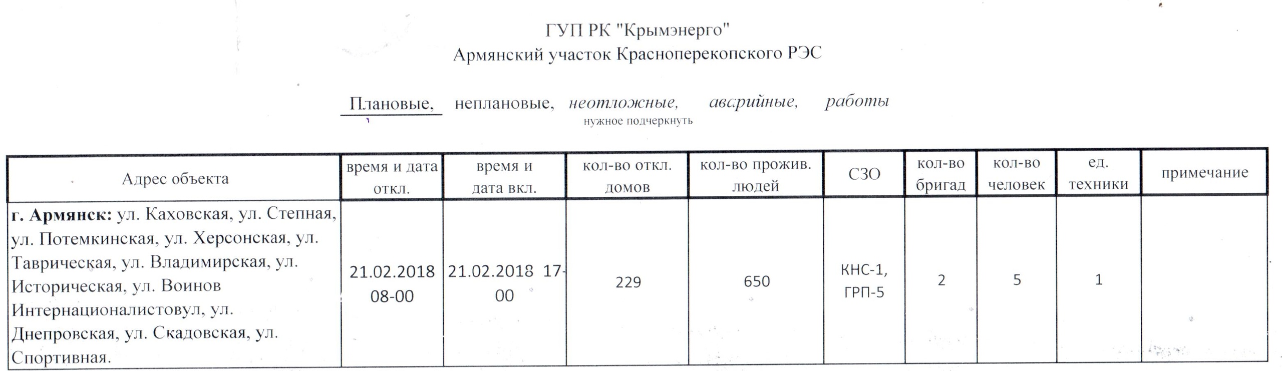 Главная / Информация / ПЛАНОВЫЕ ВНЕПЛАНОВЫЕ ОТКЛЮЧЕНИЯ РЭС