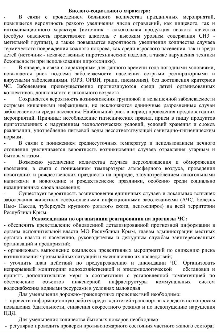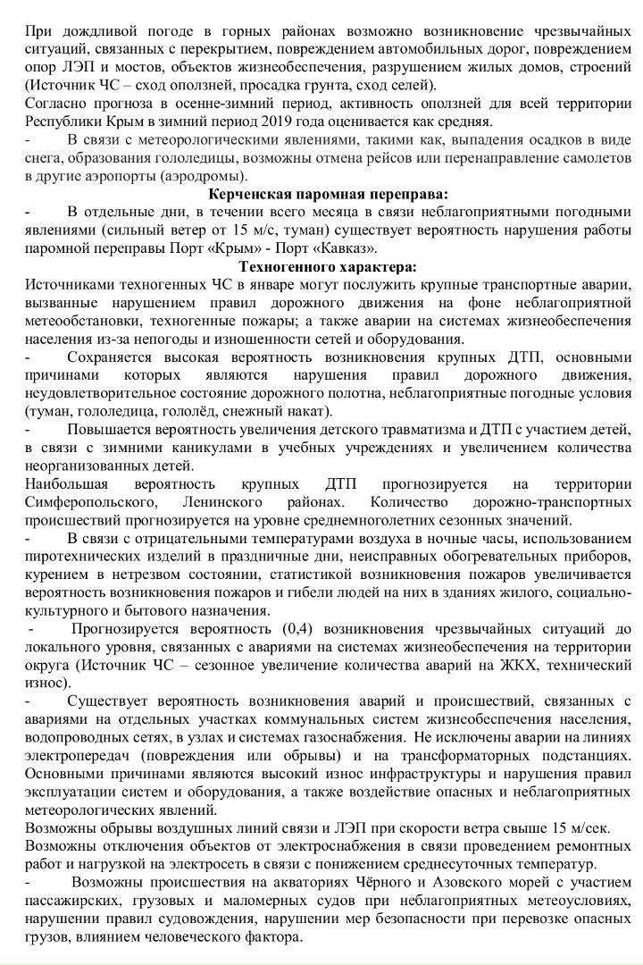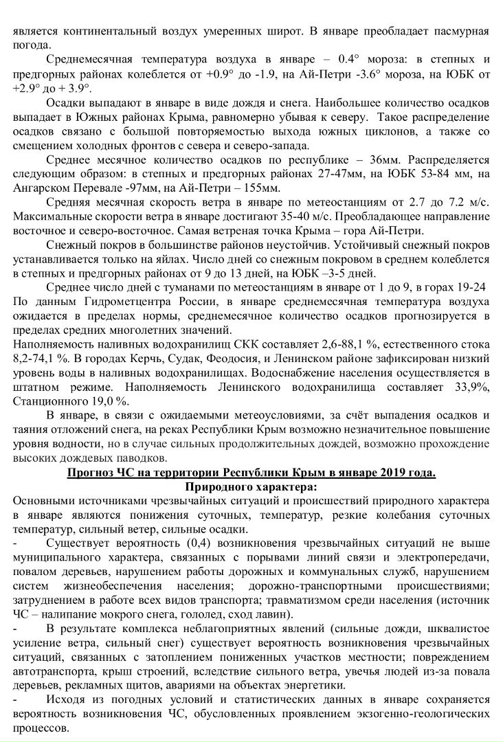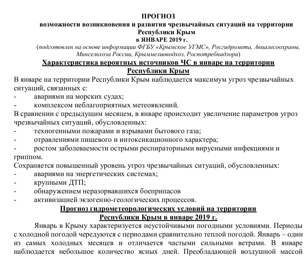 ПРОГНОЗ возможности возникновения и развития чрезвычайных ситуаций на территории Республики Крым в ЯНВАРЕ 2019 г.