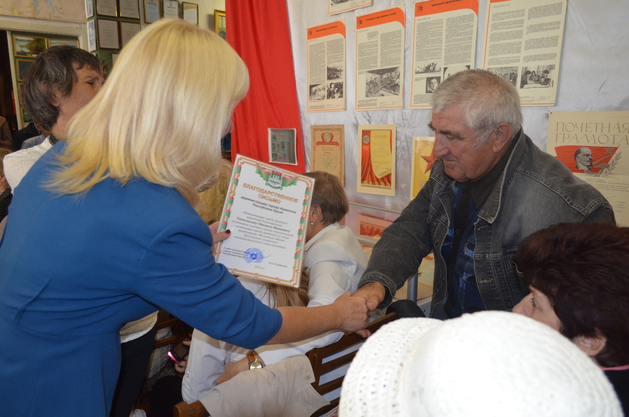 С наступающим праздником всех присутствующих поздравила руководитель аппарата администрации города. Лилия Бучко вручила благодарственные письма людям, проявившим активное участие в работе Союза ветеранов комсомола Крыма и в связи со 100-летием ВЛКСМ.