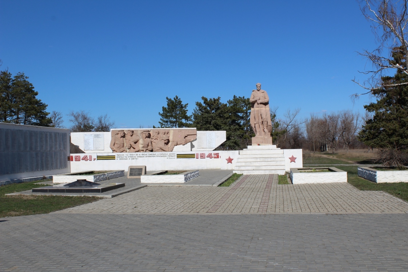 Установлен 5 октября 2001г. Здесь перезахоронены останки советских бойцов, державших оборону в 1941г. и наступавших в 1943,1944 гг.