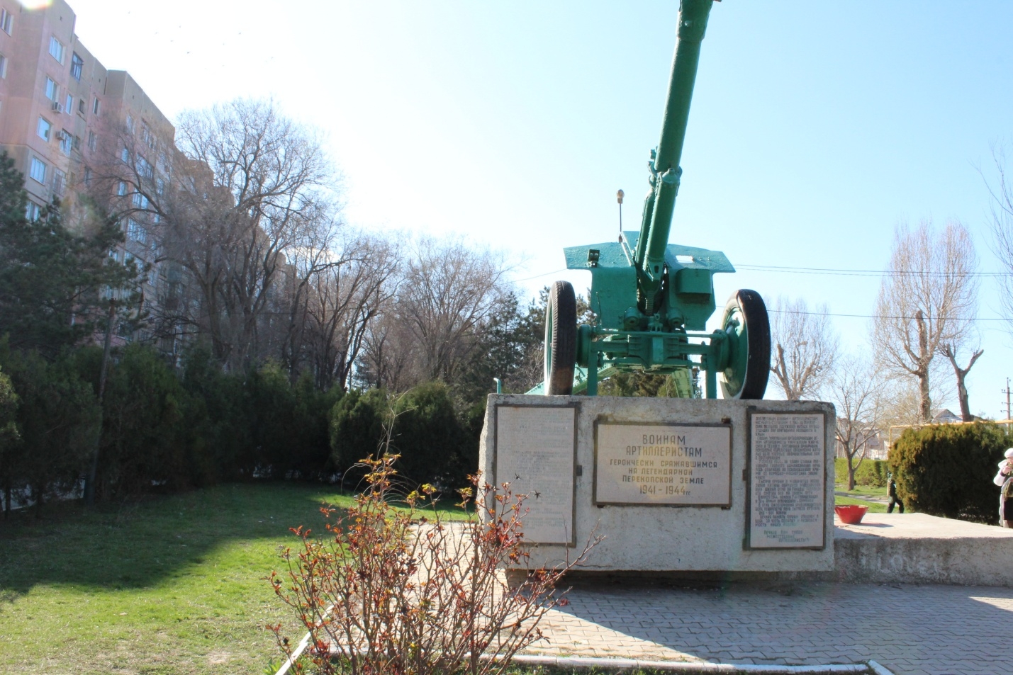 Памятный знак в честь воинов-артиллеристов (гаубица). г.Армянск, ул.Гайдара.