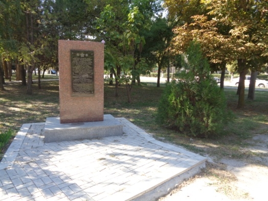 Памятный знак в честь Героя Советского Союза генерал-майора И.П. Корявко. г.Армянск, ул.Гайдара.