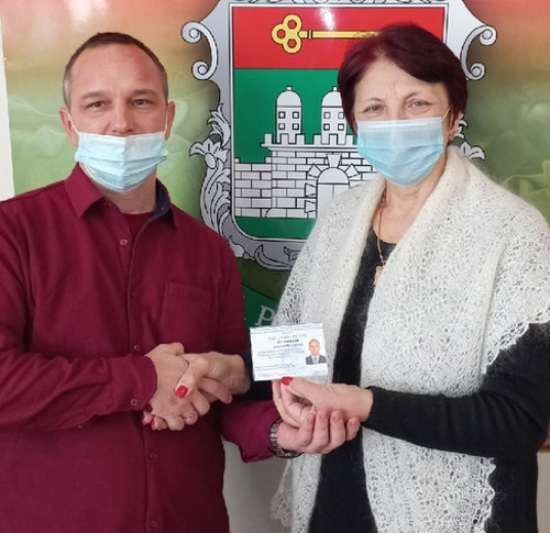 Председатель территориальной избирательной комиссии города Армянска Республики Крым вручила избранному депутату Армянского городского совета Республики Крым второго созыва удостоверение депутата