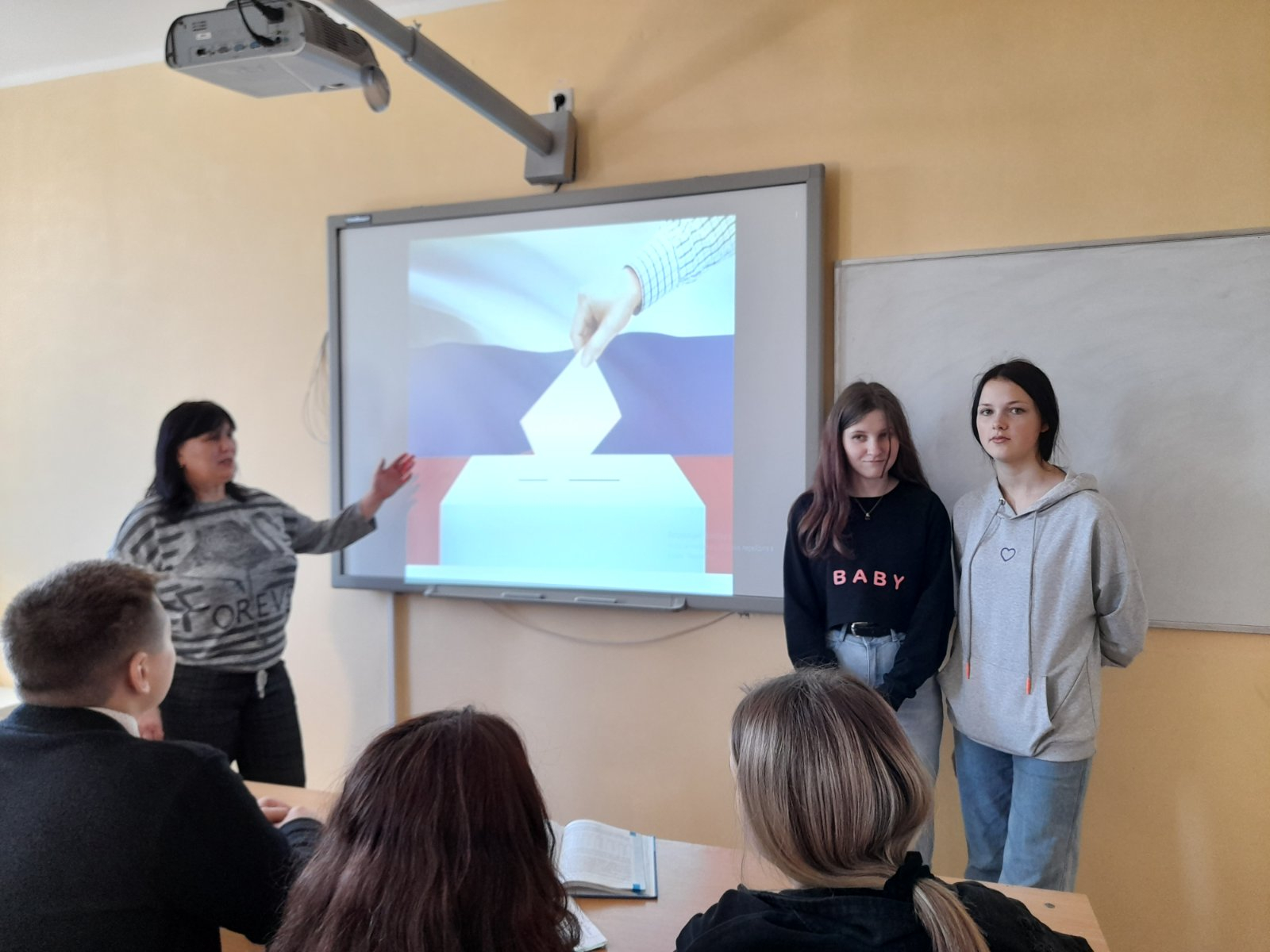 В ходе урока старшеклассникам была показана презентация «О выборах хочу знать всё».